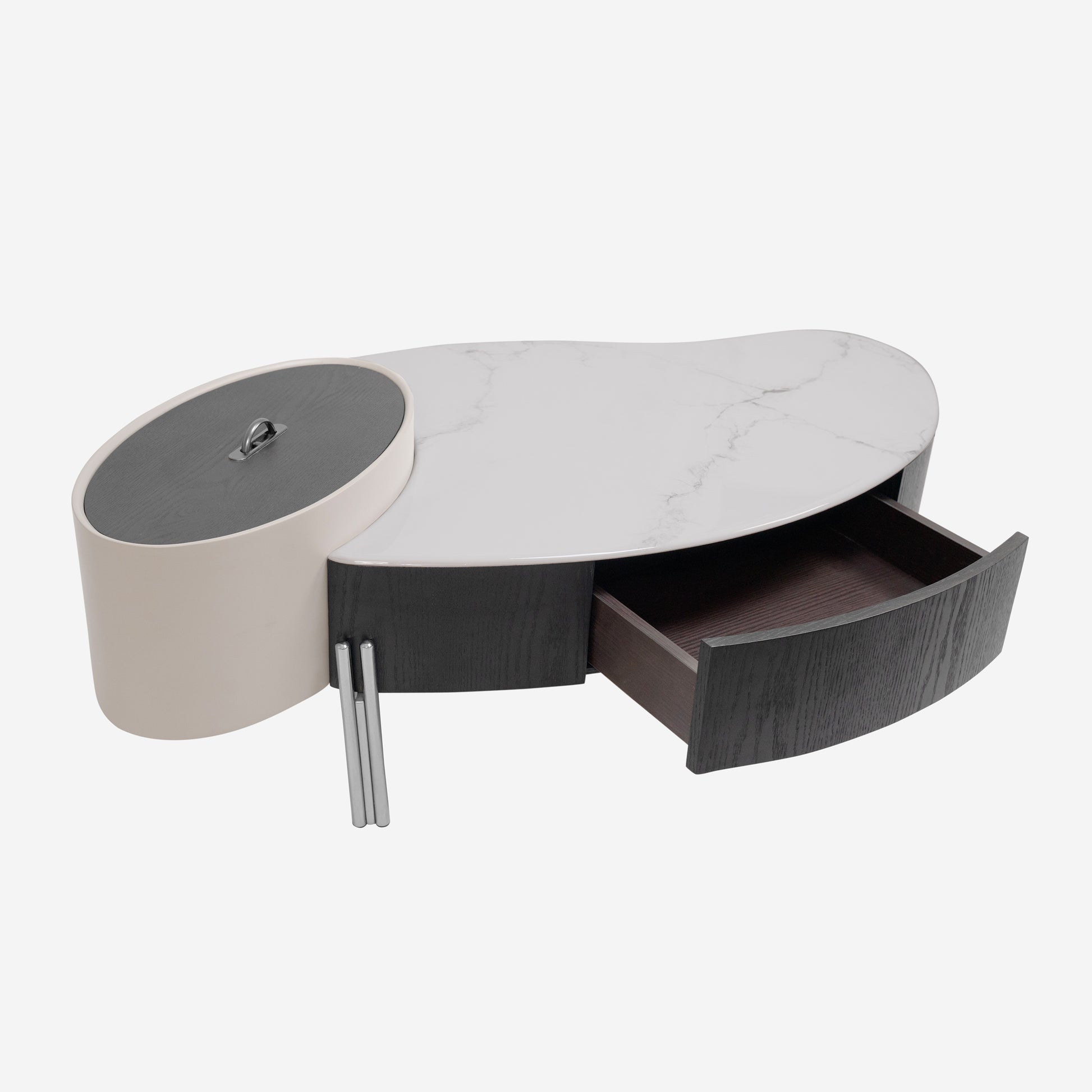 Organize your living room with the Aria Marble Centre Table with Dual Storage. It perfectly blends elegant form with practical function, offering a sophisticated surface paired with generous hidden compartments to keep your space clutter-free.