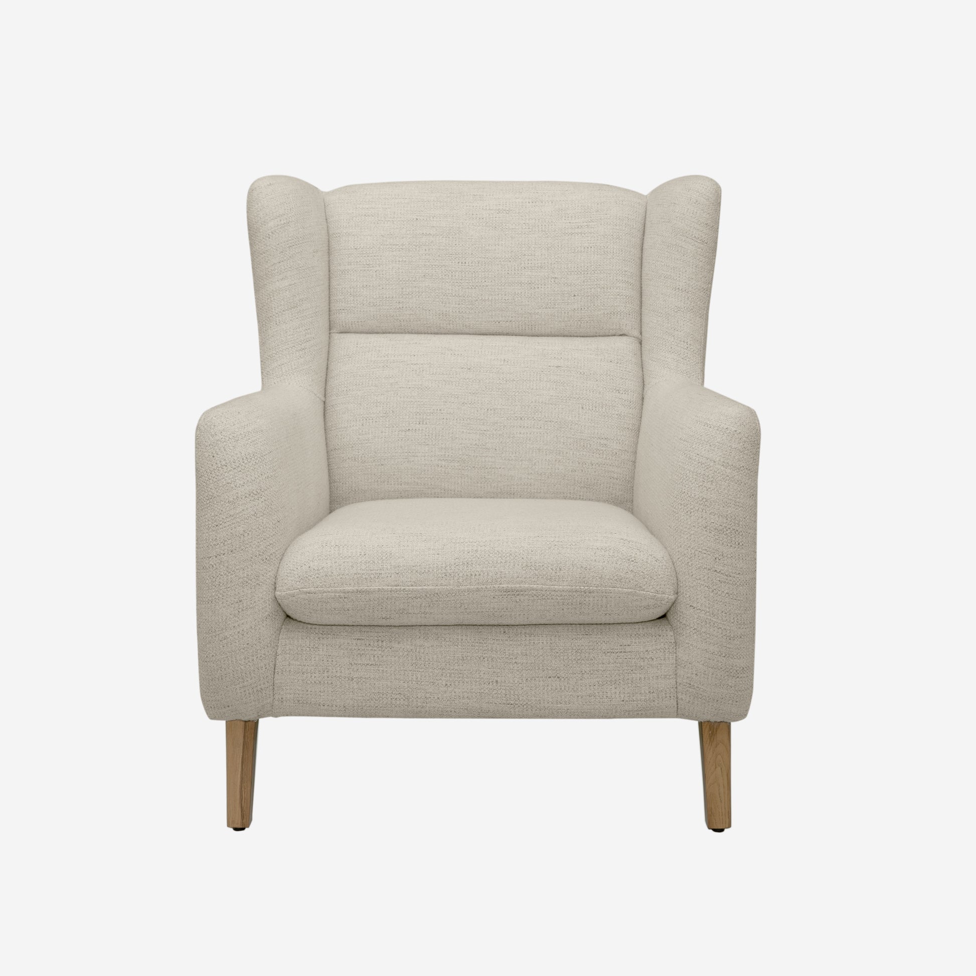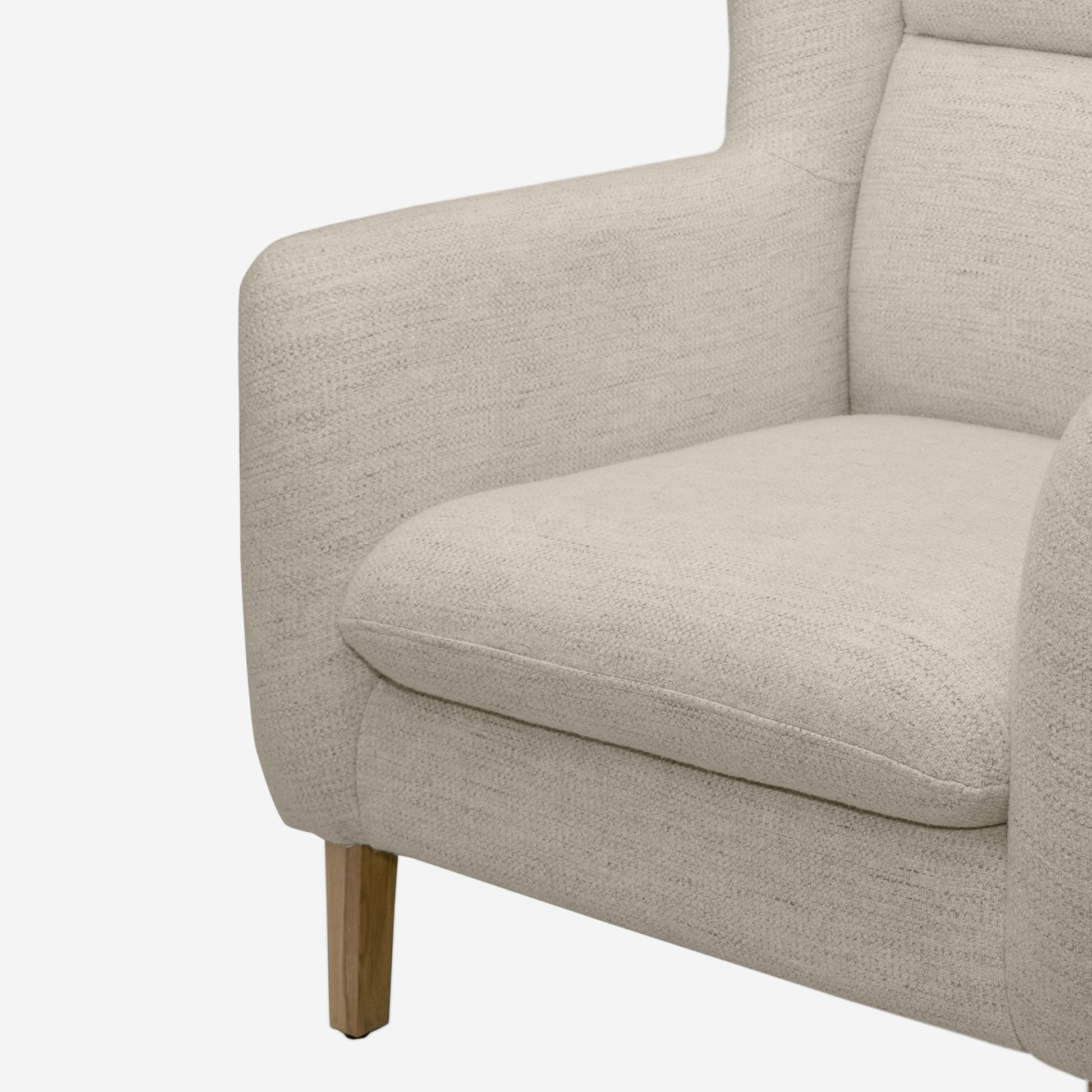 Built on a strong solid wood frame with teak wood legs, the Harlow Arm Chair provides durability and stability without compromising on style. Its clean silhouette, wing-style backrest, and plush cushioning make it a versatile piece that enhances both modern and classic interiors.