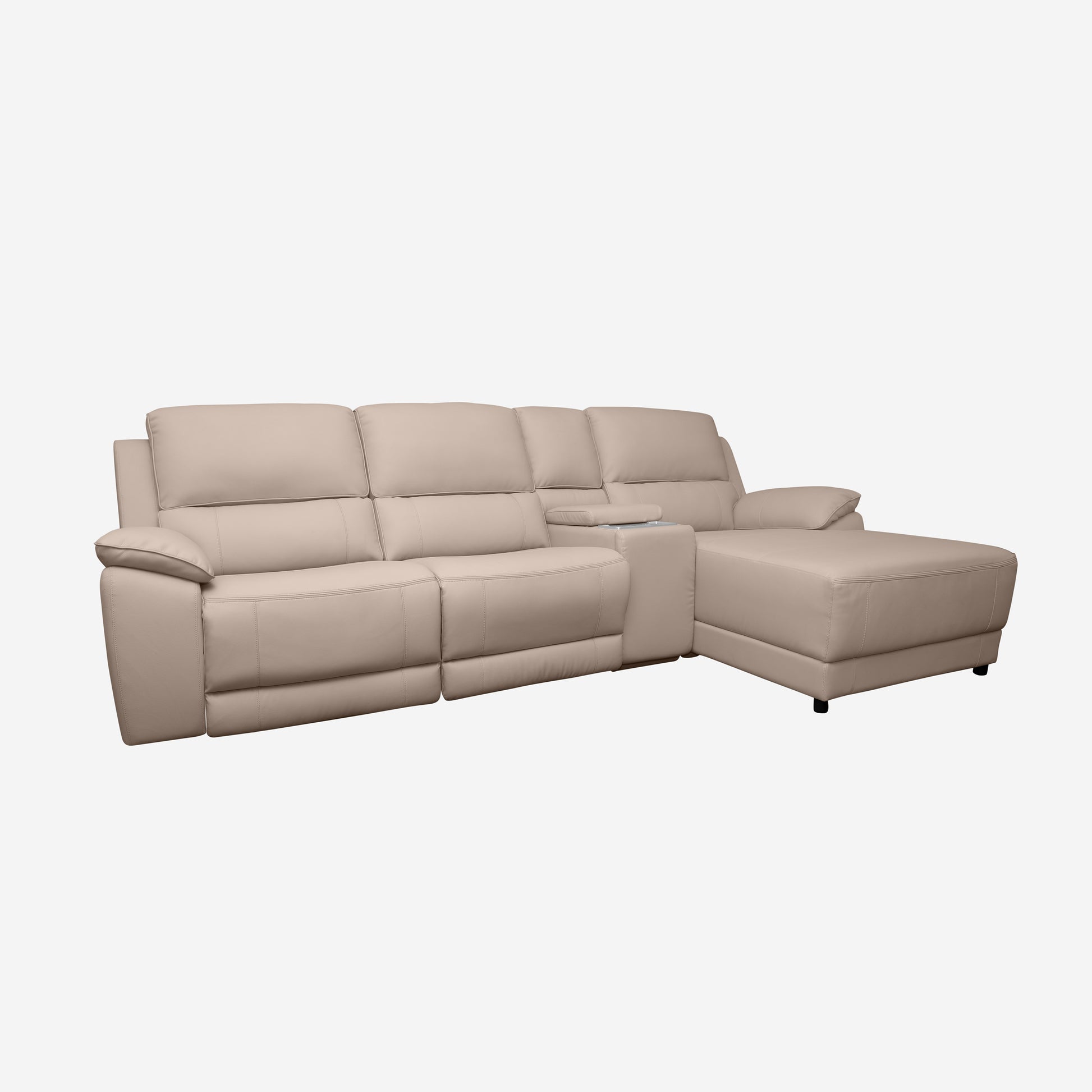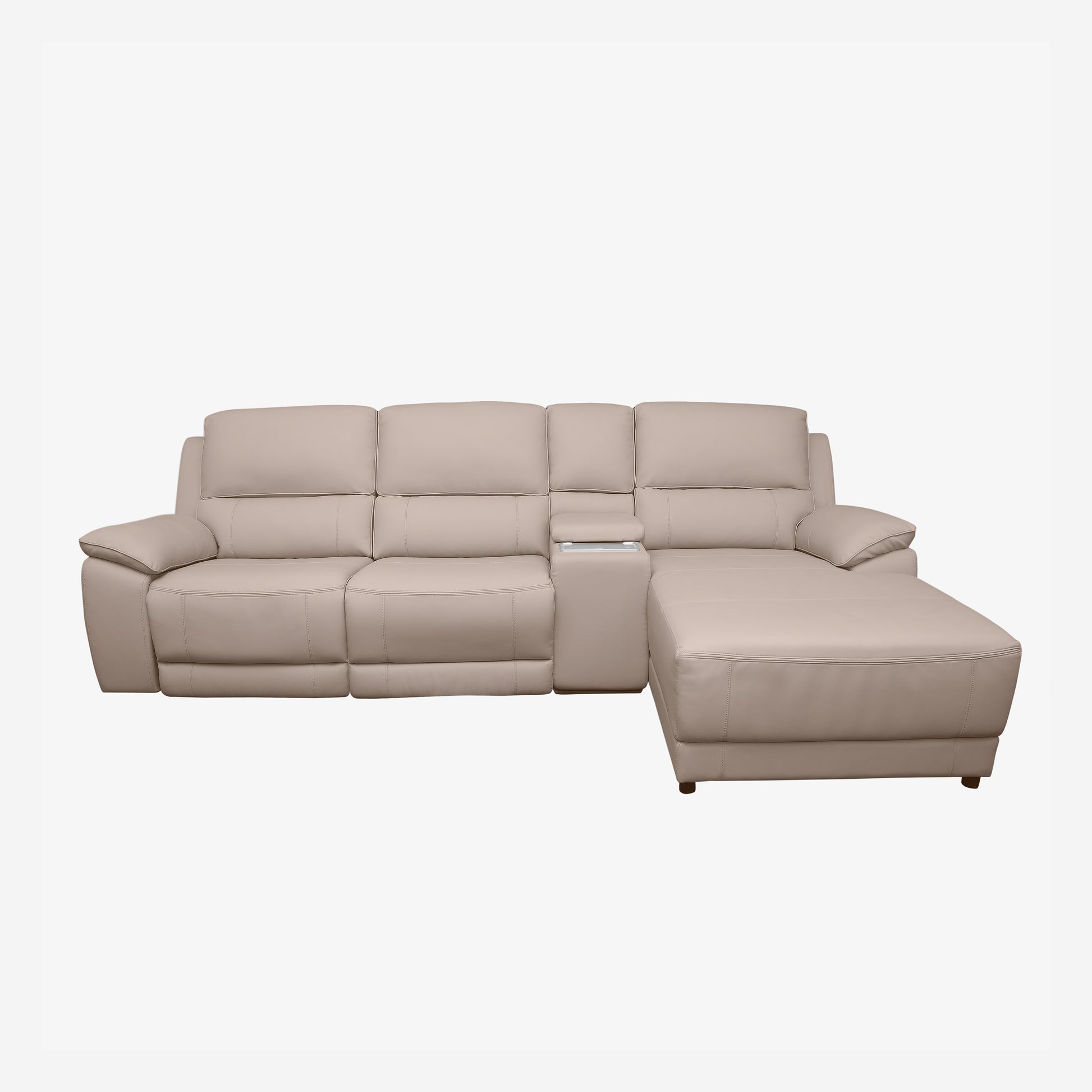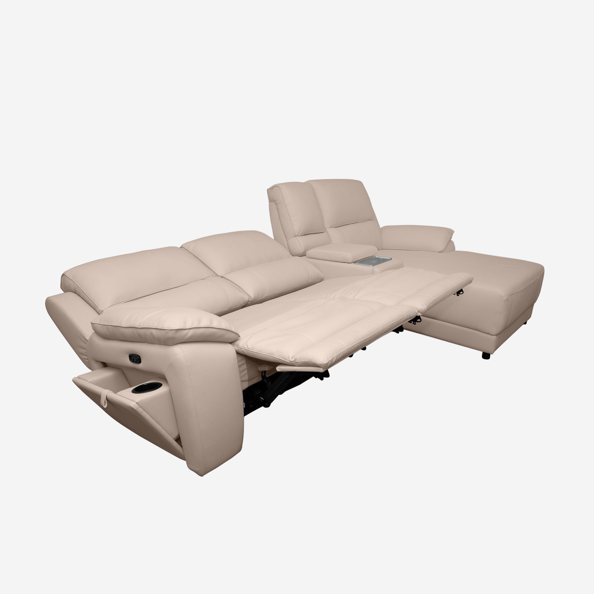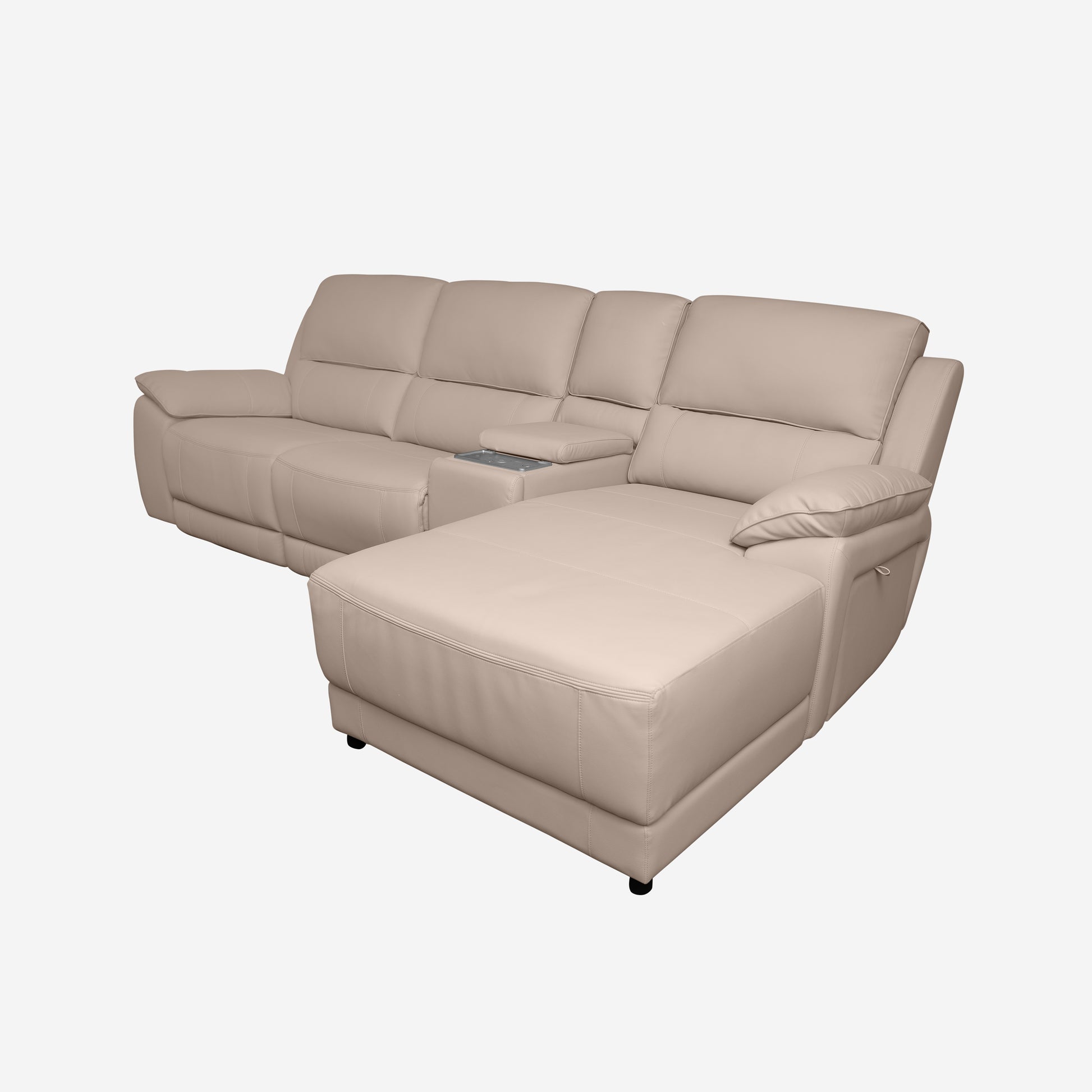 Finished in elegant neutral tones with sleek contemporary styling and adjustable headrests for personalized comfort, this sectional is a versatile, stylish, and spacious centerpiece for any modern living room.
