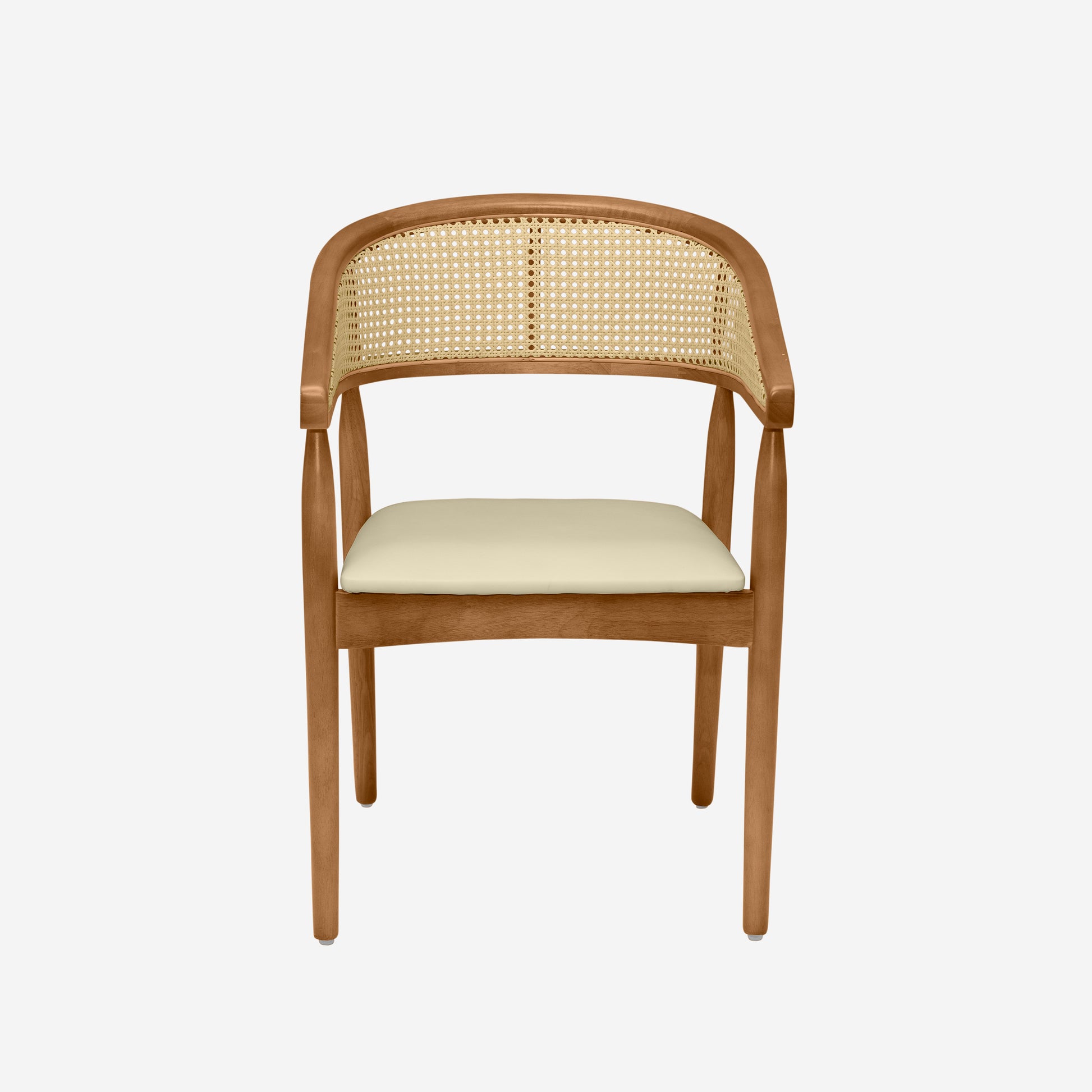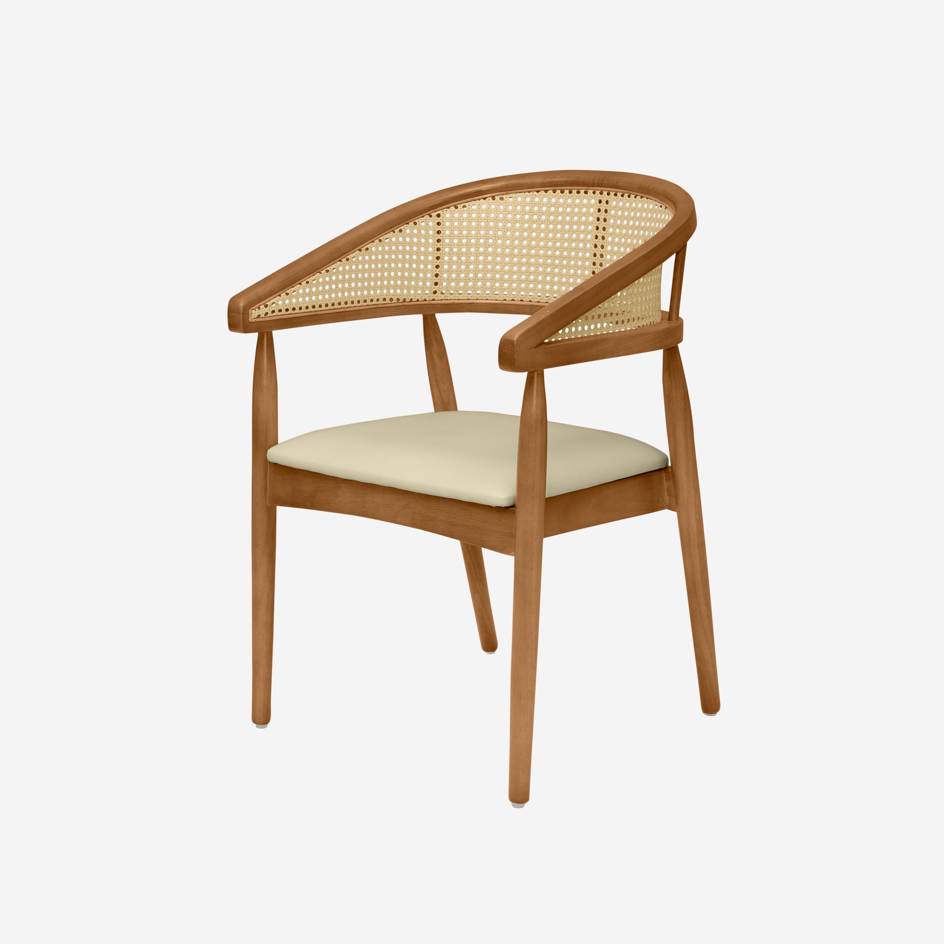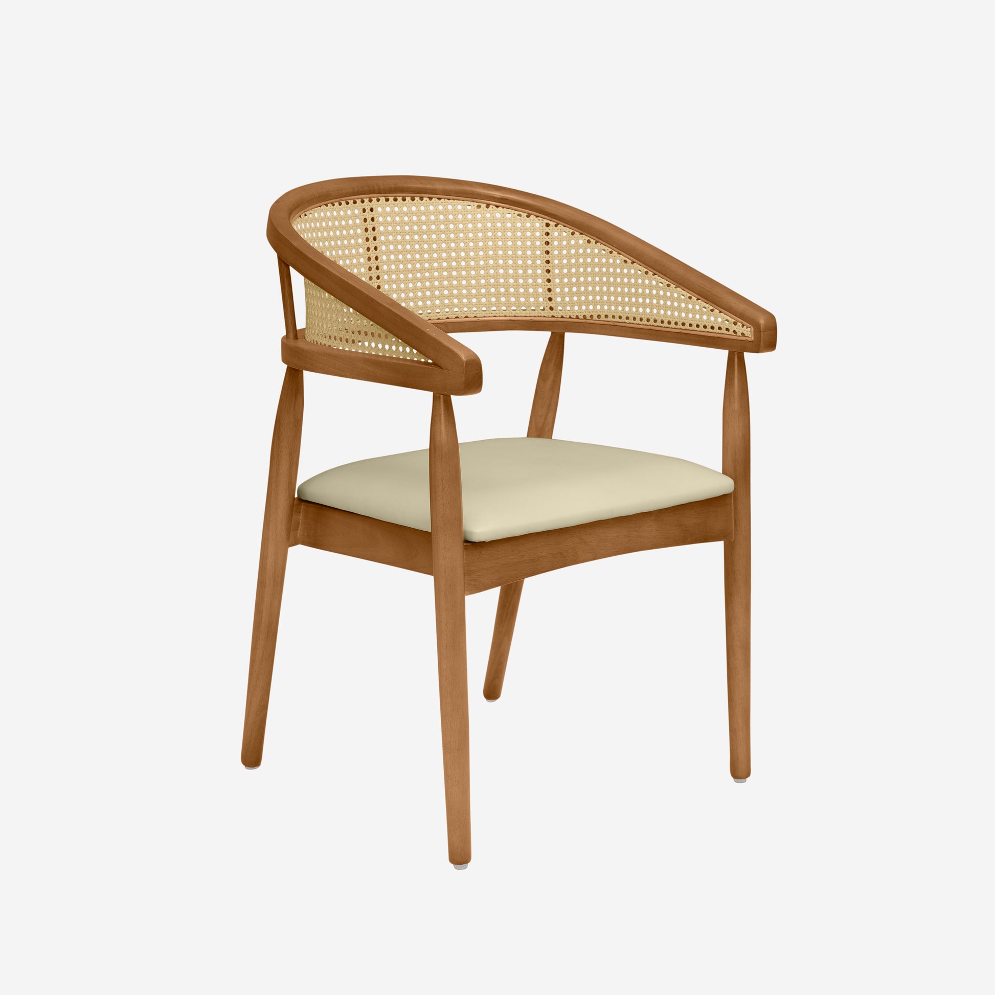 The Marvello Arm Dining Chair offers a refined blend of natural materials and contemporary comfort, making it a standout choice for restaurants, cafés, and elegant dining spaces. Its beautifully curved cane backrest provides breathability and visual warmth, while the premium rexine seat ensures easy maintenance and long-lasting comfort.