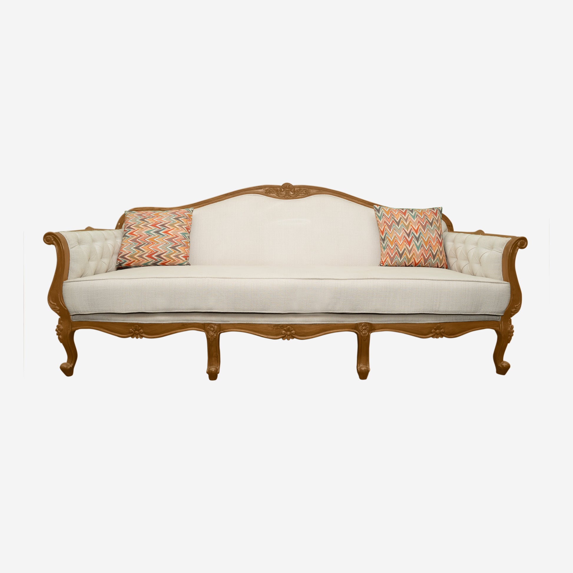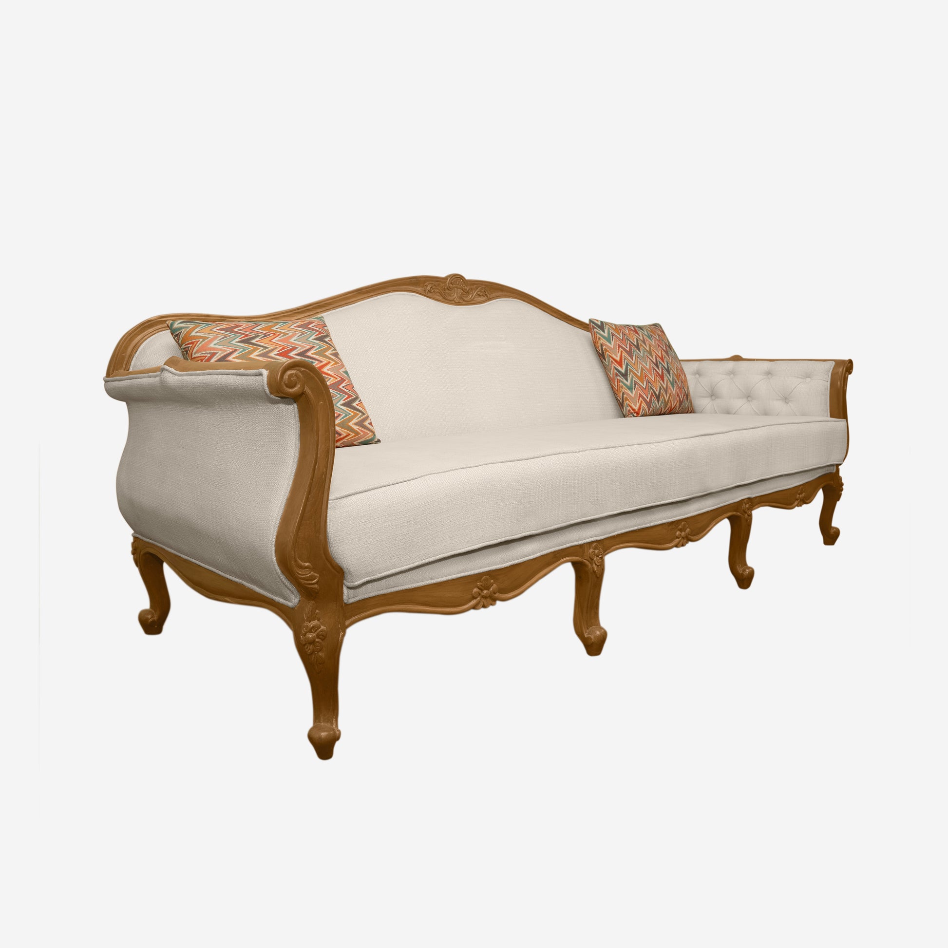 Celebrate timeless craftsmanship with the Regalia Hand-Carved Teak Wood Sofa. It perfectly blends traditional artistry with classic comfort, offering intricate hand-carved detailing on a complete teak wood frame that showcases the skill of master craftsmen.