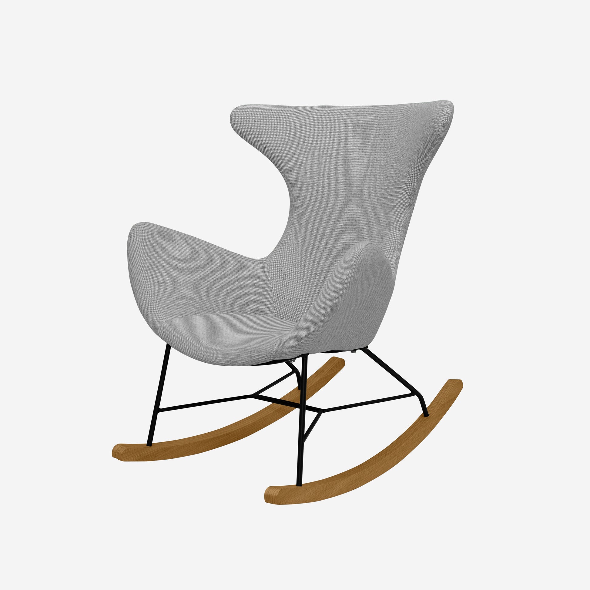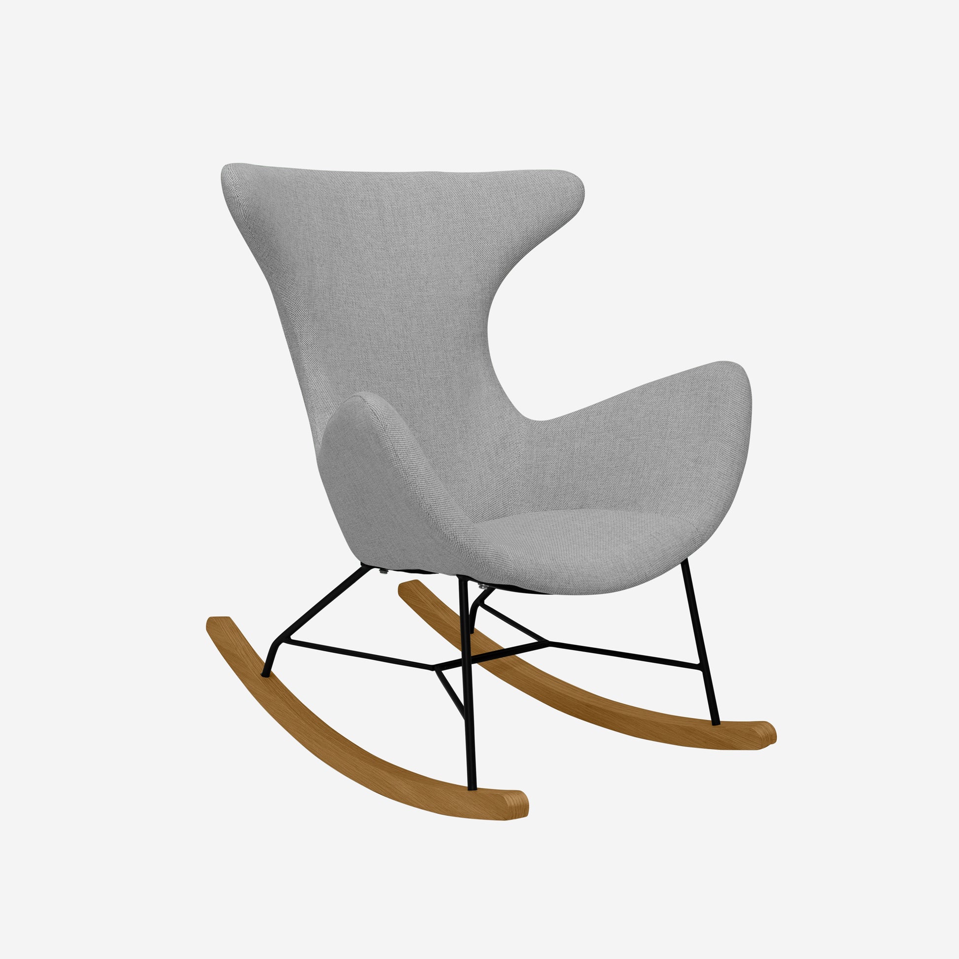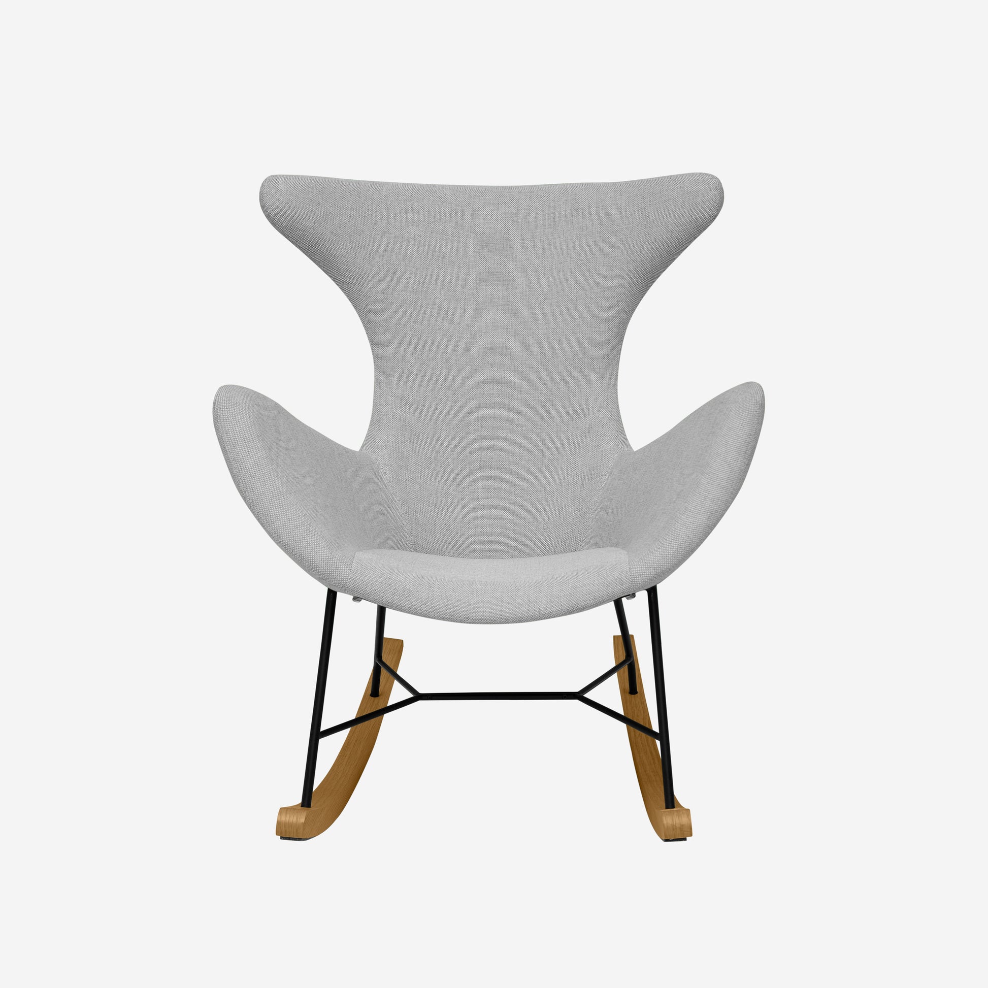 Crafted with a flexible ply body, the chair gently adapts to movement, creating a natural and soothing rocking experience. The sturdy metal base, paired with elegant wood-covered runners, ensures long-lasting stability while adding a warm, contemporary aesthetic.